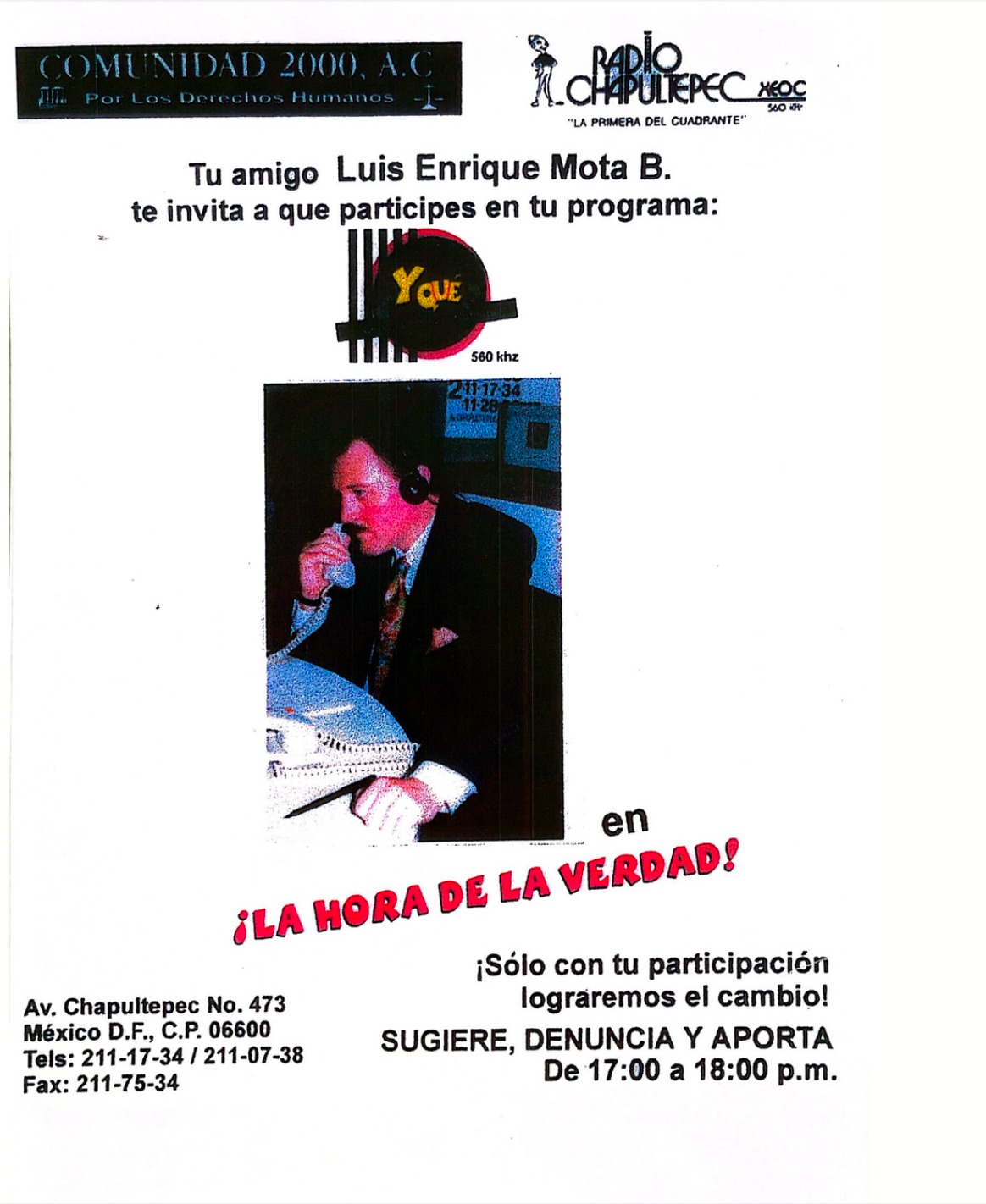 EL DR. LUIS ENRIQUE MOTA BALDERAS ES EL FUNDADOR Y ACTUAL PRESIDENTE DE COMUNIDAD 2000, A.C., UNA ORGANIZACIÓN CIVIL COMPROMETIDA CON LA DEFENSA DE LOS DERECHOS HUMANOS, LA JUSTICIA SOCIAL Y LA TRANSFORMACIÓN DEMOCRÁTICA EN MÉXICO Y AMÉRICA LATINA. CON MÁS DE 40 AÑOS DE TRAYECTORIA, SE HA CONSOLIDADO COMO UNA FIGURA CLAVE EN LA LUCHA CONTRA LOS ABUSOS DE PODER, TANTO EN EL ÁMBITO PÚBLICO COMO EN EL PRIVADO. HA ENFRENTADO CON FIRMEZA A GRANDES CORPORACIONES INTERNACIONALES COMO MICROSOFT Y A ALTOS FUNCIONARIOS DEL GOBIERNO MEXICANO, ENTRE ELLOS EL EX SECRETARIO DE SEGURIDAD PÚBLICA, ALEJANDRO GERTZ MANERO, A QUIEN DENUNCIÓ POR VIOLACIONES SISTEMÁTICAS A LOS DERECHOS LABORALES Y HUMANOS DE POLICÍAS AUXILIARES. ENTRE SUS LOGROS MÁS DESTACADOS SE ENCUENTRA LA LIBERACIÓN DEL EX LÍDER PETROLERO JOAQUÍN HERNÁNDEZ GALICIA, “LA QUINA”, Y DE UN GRUPO DE CAMPESINOS DEL ESTADO DE GUERRERO, ENCARCELADOS DURANTE AÑOS SIN UN DEBIDO PROCESO. SU LABOR HA SIDO AMPLIAMENTE DIFUNDIDA POR MEDIOS DE COMUNICACIÓN NACIONALES E INTERNACIONALES, Y ES RECONOCIDO COMO UN REFERENTE ÉTICO EN LA DEFENSA DE LOS SECTORES MÁS VULNERABLES. DESDE LA TRINCHERA DE COMUNIDAD 2000, SU LIDERAZGO SIGUE INSPIRANDO A UNA CIUDADANÍA CRÍTICA, VALIENTE Y COMPROMETIDA CON UN FUTURO MÁS JUSTO, LIBRE Y CON DERECHOS GARANTIZADOS PARA TODAS LAS PERSONAS.